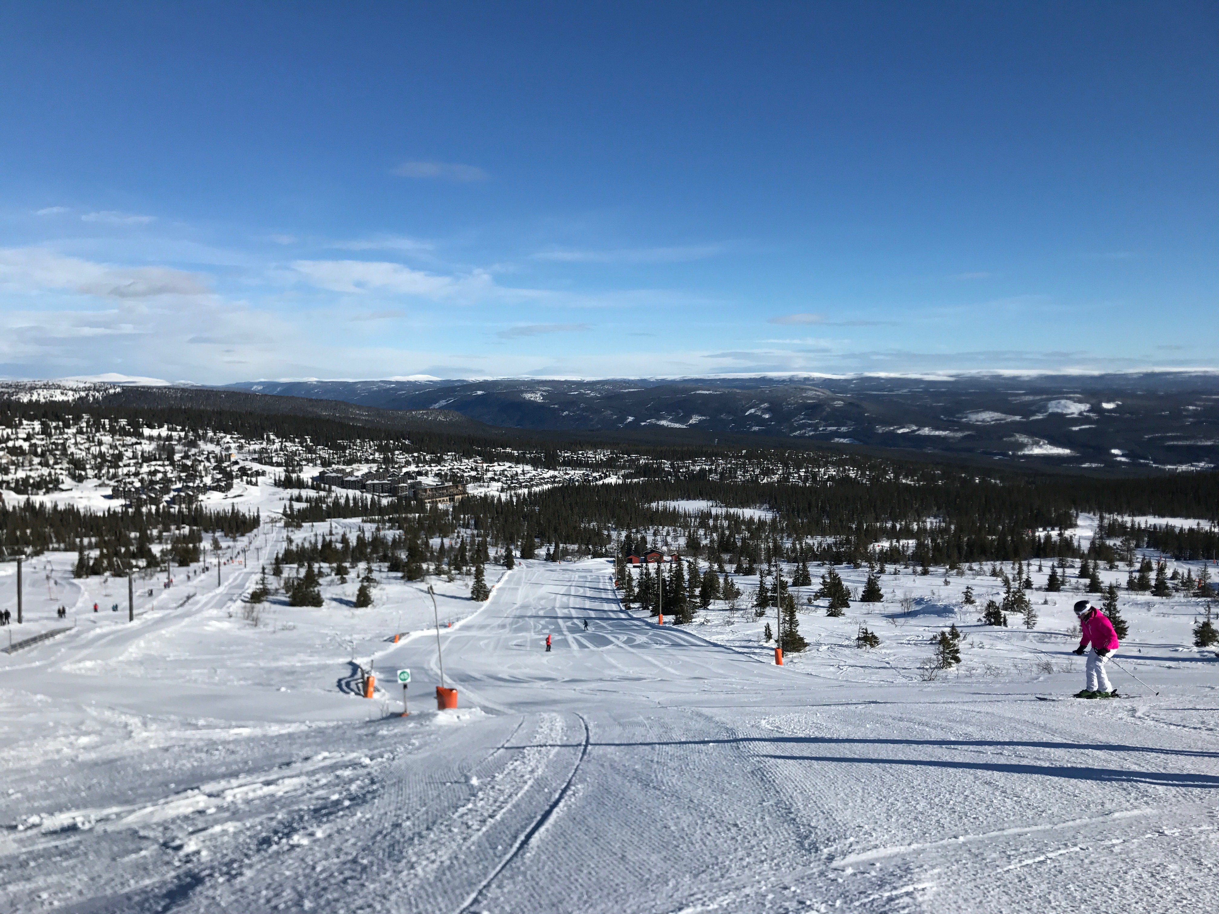 Je kunt in Trysil op meerdere plaatsen overnachten. Het fijne van de accommodaties is dat je in de meeste gevallen skiet tot aan de voordeur. Zo sliepen wij in het Radison Blu Mountain Resort, dat letterlijk op de piste staat. Het hoogste punt van het skigebied ligt op slechts 1132 meter. Als je er nog nooit geweest bent, dan is het moeilijk om je daar iets bij voor te stellen. Het klinkt niet alleen laag, het is ook laag. Anders dan in de Alpen heb je in Trysil niet een uitzicht over ruige bergtoppen, maar zie je een heuvelachtig landschap vol bomen. Je kunt de skigebieden van Zweden gemakkelijk zien en zelfs nog verder kijken. Behoorlijk indrukwekkend allemaal! Je vraagt je natuurlijk gelijk af of je wel genoeg meters kunt maken en of er überhaupt wel iets te skiën valt. Gelukkig kan ik je daarin gelijk geruststellen, want wat skiën betreft zul je je in Trysil niet snel vervelen. Als je van het hoogste punt helemaal naar het dal skiet (+/- 400 meter), dan ben je al snel zo’n 6 à 7 kilometer onderweg. Daarnaast kun je door het hele gebied allerlei leuke tochten maken en merk je helemaal niet dat het zo laag is.