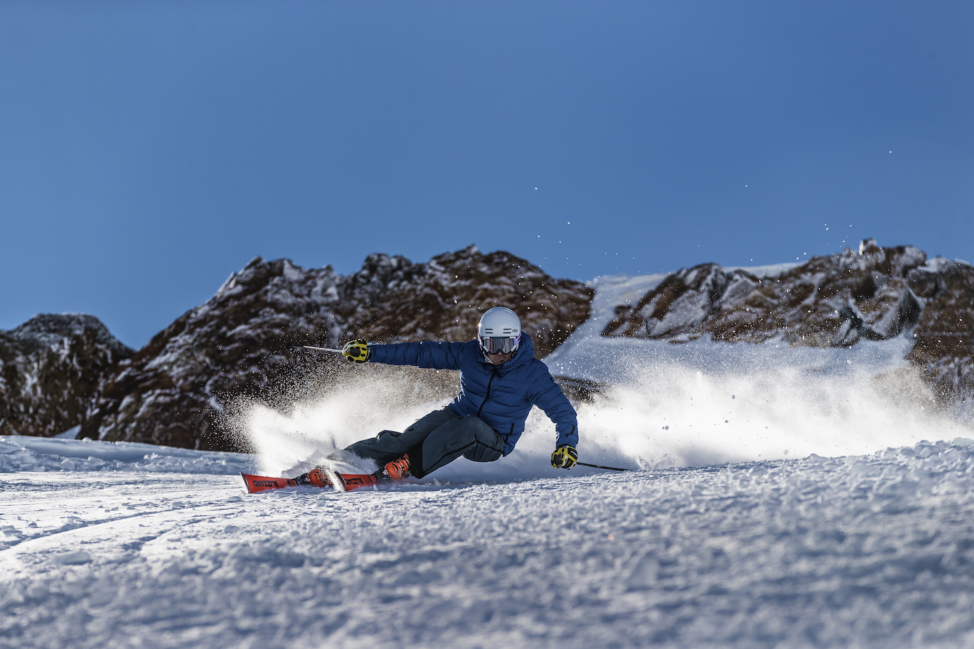 Dan is er ook de Carbon Spine technologie. Deze zorgt juist voor verbetering bij het uitsturen van de bocht. Er zijn namelijk ook carbon elementen toegevoegd aan de houten kern van de ski, loodrecht over de hele lengte van de ski. Hierdoor kun je makkelijker de bocht uitsturen en je nieuwe bocht inzetten.