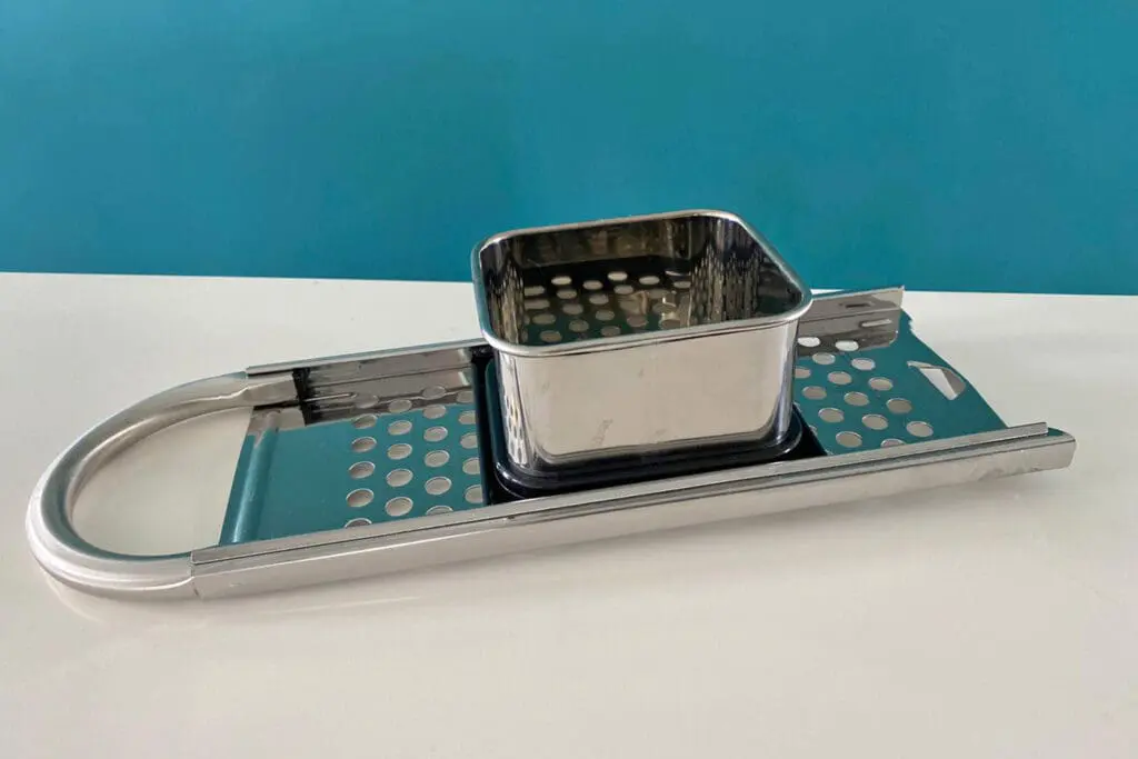 De basis voor Käsespätzle is natuurlijk de Spätzle. Dit lijkt een beetje op pasta. Je maakt deze pasta met een speciale Spätzlerasp. Dit is een rasp met ronde gaatjes en daarboven een bakje dat je heen en weer kunt schuiven. Bij Bol.com kun de rasp bestellen. Te veel gedoe? Een andere optie is om een vergiet met grote ronde gaatjes te gebruiken. Een Spätzlerasp werkt alleen wel makkelijker.