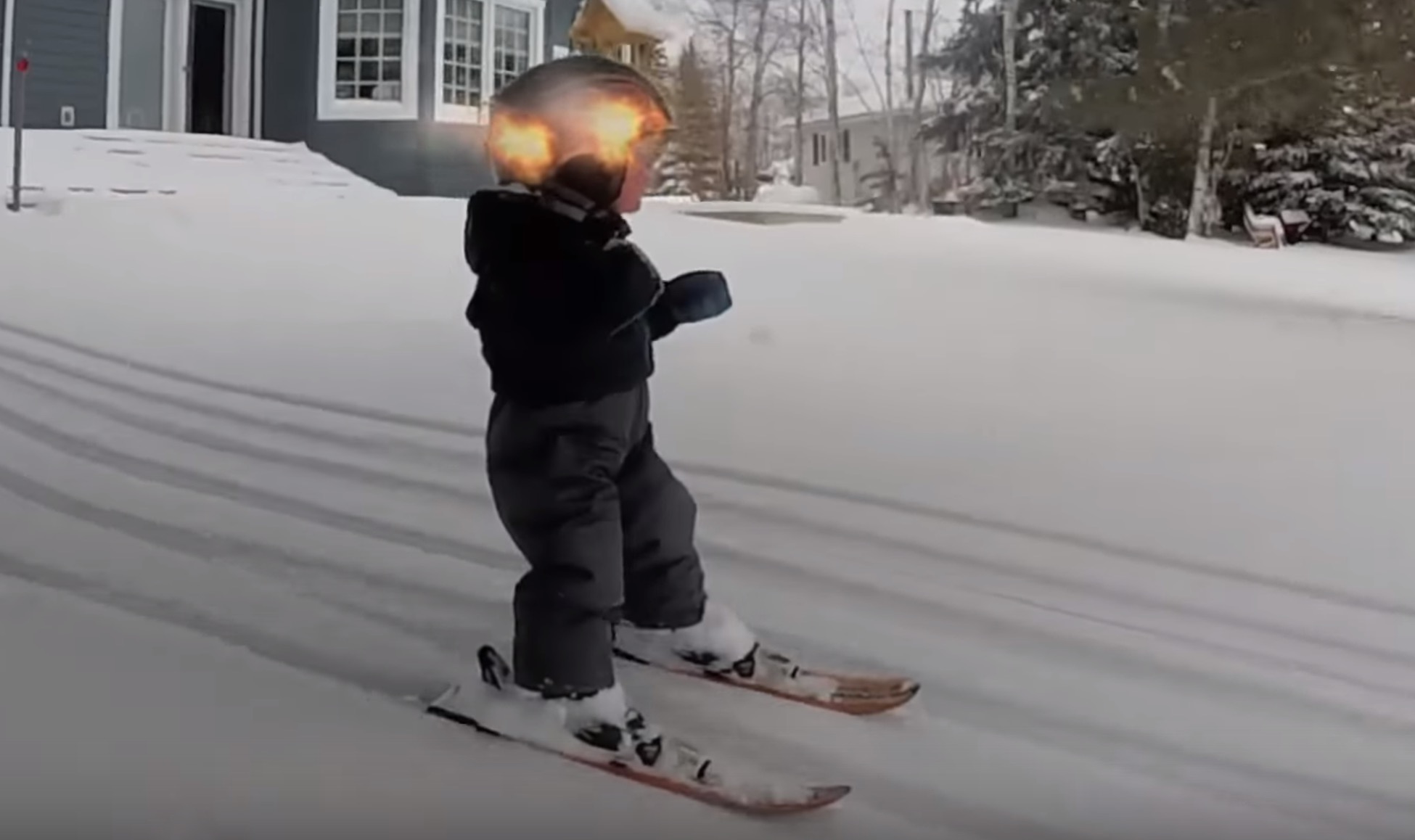 Dacht jij dat alleen pro-skiërs een eigen funpark in hun achtertuin hebben? Misschien is dat in Europa zo, maar in Canada niet. Kijk deze 2-jarige skiër eens gaan dan!