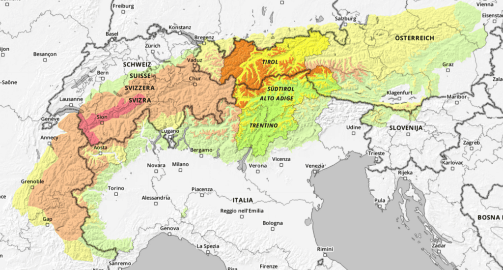 Overstromings- en lawinegevaar in de Alpen