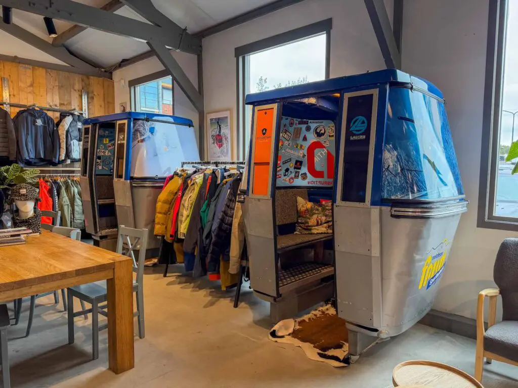 Een van de topstukken is het “Mothership” van de collectie: de grote Gornergrat-Stockhorn gondel uit 1958. Menno droomde van een grote gondel als ingang en vroeg zijn vriend in Zermatt, Norbert Julen. Die belde hem naar een bouwplaats in Furi. “Daar stond hij, het kroonjuweel. Ik kreeg hem geschonken.” Het toeval wilde dat Menno en zijn vriend Marco (met gondelangst) de allerlaatste passagiers ooit in die lift waren geweest. De uitdaging was het transport: “Hij moest van 1800 meter hoogte door autovrij Zermatt. Ik heb alles moeten regelen: een autoambulance, een graafmachine en de sterkste elektrowagen van Zermatt.” Met zijn schoonvaders VW Touareg werd de gondel, met “de aerodynamica van een hele grote koelkast”, naar Nederland gereden. Een rit die door het extreme verbruik een vermogen aan benzine kostte. Nu dient hij als koffiecorner.