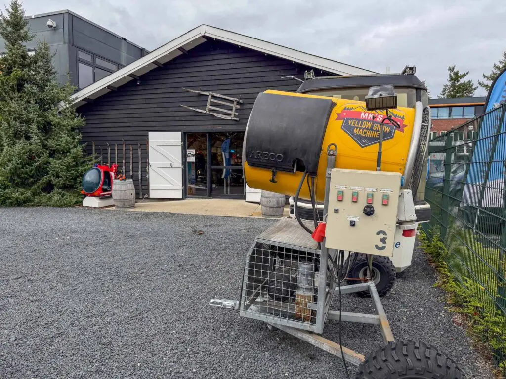 De collectie machines is minstens zo indrukwekkend. De Pistenbully (een PB145) vond Menno na een “omweg” van vijf uur vanaf een skitest, vlakbij de Sloveense grens. “Hij stond te shinen in het gras bij een restaurant. De vrouw van de eigenaar schreeuwde dat ‘dat ding’ weg moest.” De eigenaar zelf was in tranen; hij gebruikte zijn “liefje” om een sleebaan te maken en even rust van zijn vrouw te hebben.