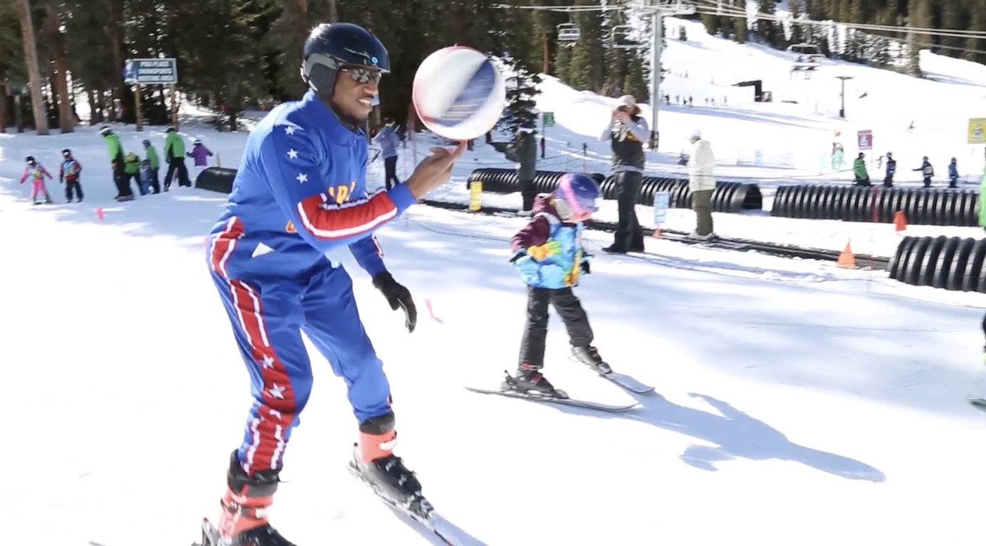 De Globetrotters om wie het gaan is Anthony Blakes, ook wel bekend als ‘Buckets’. Hij ging op bezoek in het skigebied A-Basin in Colorado. Zoals je ziet is hij niet zo goed op de latten, maar het is verbazingwekkend hoe snel hij de skisport kan combineren met de basketbalsport.
