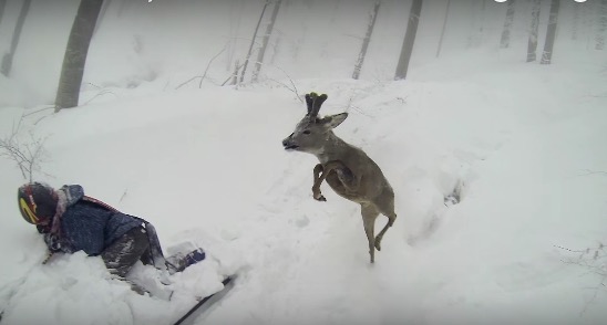 Over het algemeen zijn rendieren bang voor mensen waardoor je bijna nooit wilde rendieren spot tijdens je wintersportvakantie. Toch blijken ook deze dieren erg nieuwsgierig te zijn en brengt dit rendier in de bovenstaande skiër een klein bezoekje. Terwijl de skiër druk bezig is om uit de diepe sneeuw te komen tijdens zijn val, springt het rendier zonder problemen over de skiër heen. Lang leven de actie camera’s, want dit beeld is toch redelijk uniek!