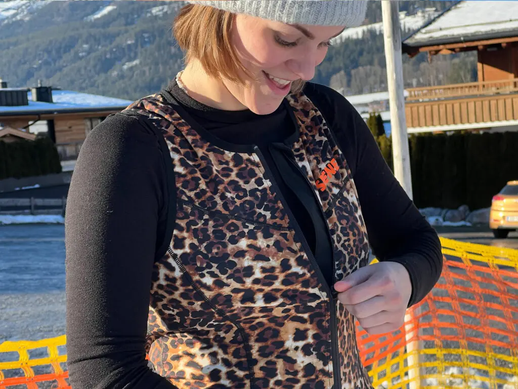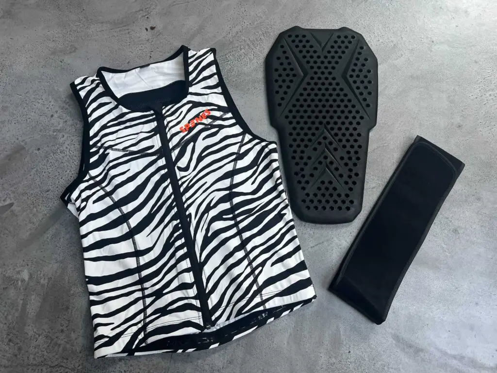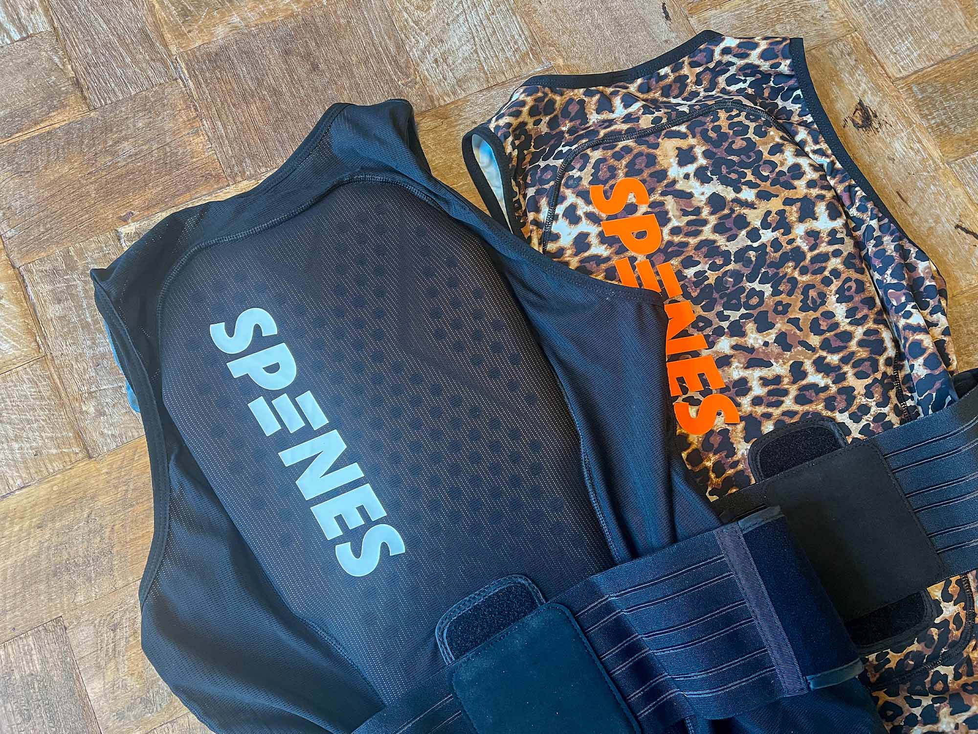 De Spines rugbeschermer is ontworpen als een vest dat je rondom je torso draagt. Dankzij de antisliprand aan de onderkant blijft de protector goed op zijn plek zitten, zelfs bij intensieve bewegingen of in de stoeltjeslift. De brede buik- en niergordel is volledig verstelbaar en zorgt ervoor dat de beschermer goed blijft zitten. De meeste testers gaven aan dat het draagcomfort erg goed was. Na een korte periode van dragen vormt de beschermer zich naar de rug, waardoor je nauwelijks merkt dat hij aanwezig is. Wel zijn er wat persoonlijke voorkeuren wat betreft de warmte en ventilatie van het model. Voor sommigen was de stof prettig en koel, terwijl anderen het als te warm ervoeren (de print variant), vooral bij hogere inspanningen of als de temperatuur milder is.