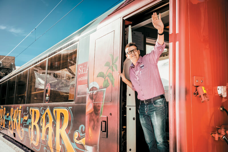 In de après ski trein vindt je een bar. Hier kun je gedurende de rit genieten van lekkere drankjes en natuurlijk zijn er ook diverse hapjes. Uiteraard is er ook een lounge te vinden waar je lekker kan relaxen. Verder zijn er natuurlijk ook de beste après ski hits te vinden.
