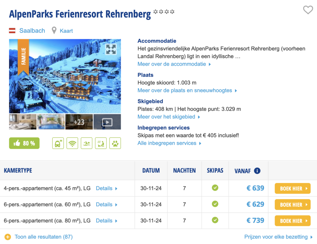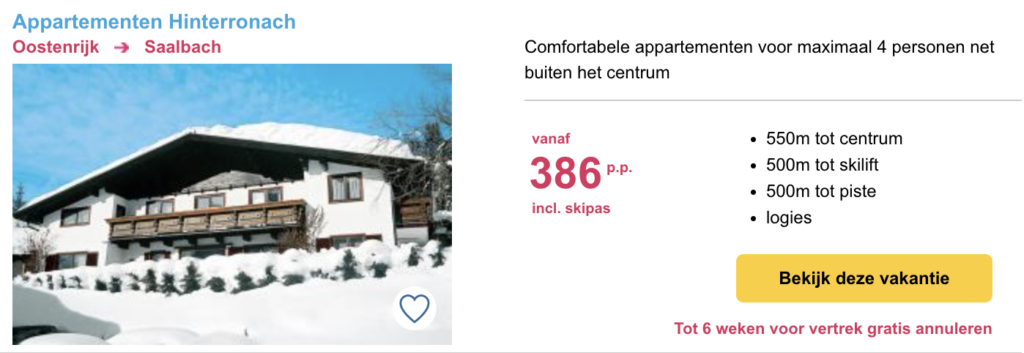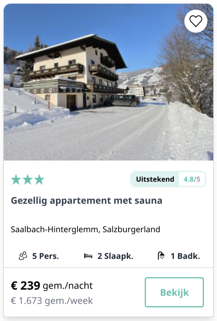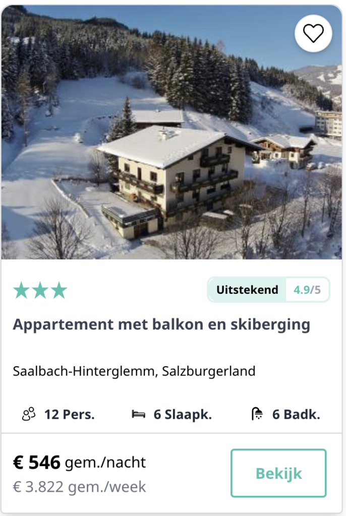 Of je nu na het skiën wilt ontspannen in je appartement of de bruisende après-ski in wilt duiken, dit wintersportgebied heeft voor iedereen iets te bieden. Een appartement in Saalbach Hinterglemm is dan ook de ideale uitvalsbasis voor een onvergetelijke wintersportvakantie! Bekijk de opties bij vijf touroperators: