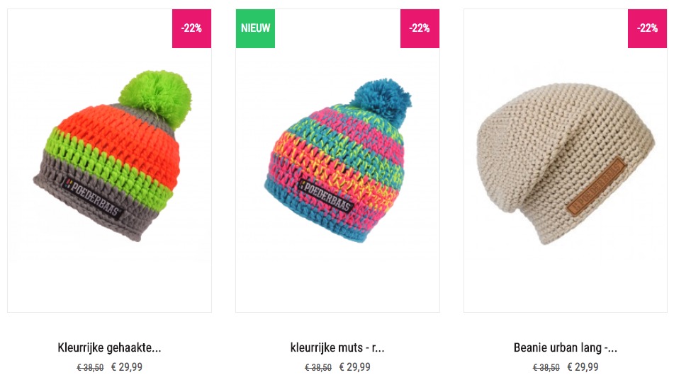 Met de kou die aankomende week voorspeld wordt is het wel fijn om er lekker warm bij te zitten. En daarbij moeten we ons hoofd niet vergeten. Een leuke bijkomstigheid: Poederbaas heeft sale. Alles mutsen zijn nu in de aanbieding.