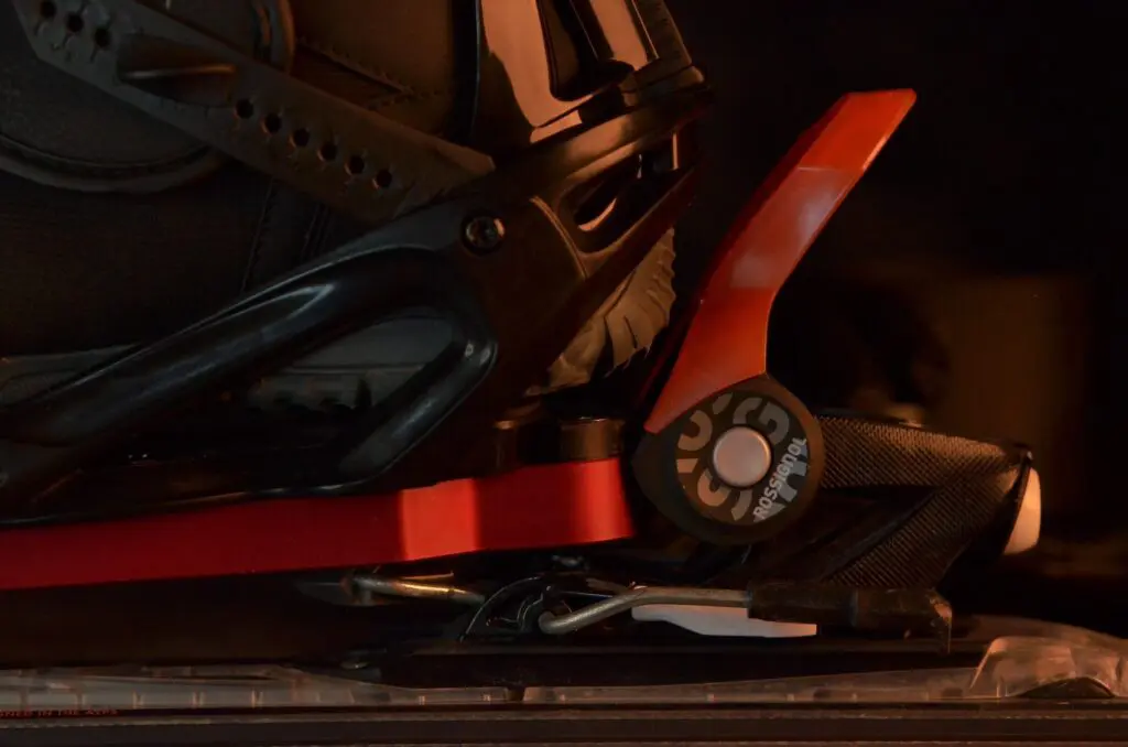 4. Je stapt met je snowboardschoenen in je snowboardbinding en maakt die vast.