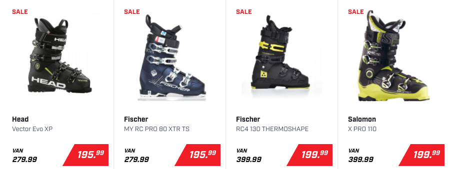 Ook skischoenen koop je op dit moment met korting. Wel willen we je aanraden om dit altijd in de winkel te doen. Een gespecialiseerd verkoper kan je dan advies geven over het kopen van de juiste skischoen. (opent in een nieuwe tab)”>Bekijk hier het complete aanbod >