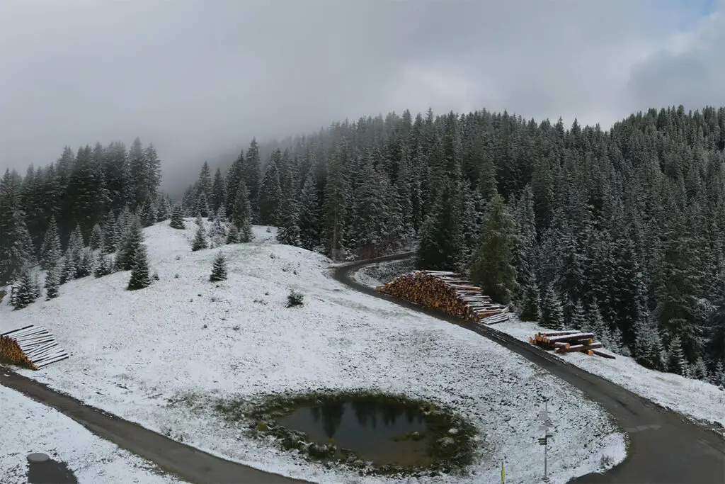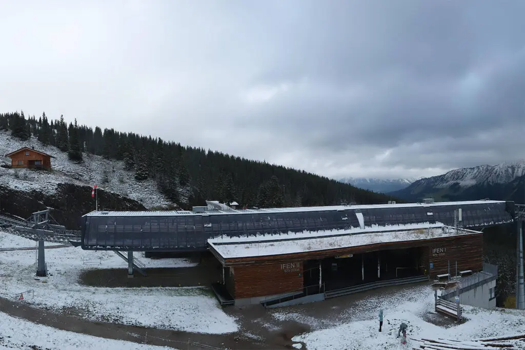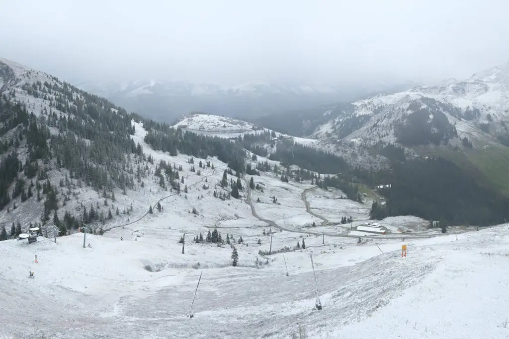 De koudste dag van het huidige sneeuwfront is vandaag (zondag 5 oktober). De sneeuwgrens daalt naar 1200 tot 1600 meter, wat zorgt voor de grootste kans op verse sneeuw op de gletsjers en in de hooggelegen dorpen. Hoewel er vannacht en vanochtend op veel plekken vlokken uit de lucht kwamen, klaart het in de loop van de dag op, vooral in het zuiden. Aan de Noordkant van de Alpen blijft het weerbeeld wisselvallig, ook de komende dagen.