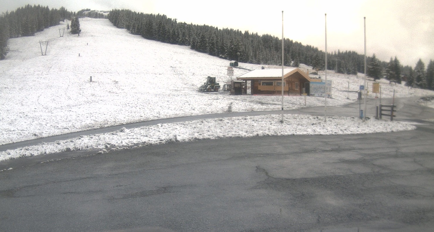De sneeuwgrens is gedurende de nacht nog omlaag gegaan en dat heeft plaatselijk tot op zo’n 1.400 meter hoogte tot sneeuwval geleid. Omdat de grond nog nat was door de regen en er niet zo heel veel sneeuw is gevallen, is de sneeuw niet overal blijven liggen. Toch heb je in enkele wintersportdorpen nu een beetje wit uitzicht. Dat zorgt natuurlijk voor een prachtig uitzicht. In Lech am Arlberg heeft de sneeuw het dorp net aan gehaald, zoals je op de foto hieronder ziet. De daken zijn wit, maar door de weg is nog net schoon.