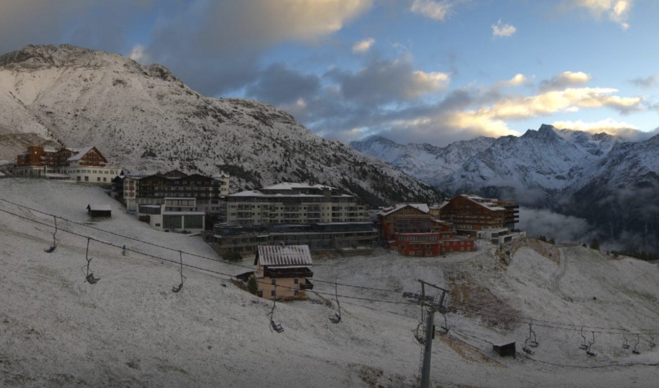 Eveneens sneeuw in Obergurgl, waar het gras ook nog wit is geworden. Daar moet wel bij gezegd worden dat het dorp op 1.900 meter ligt, net zoals Hochsölden ook hoog ligt (boven de 2.000 meter).