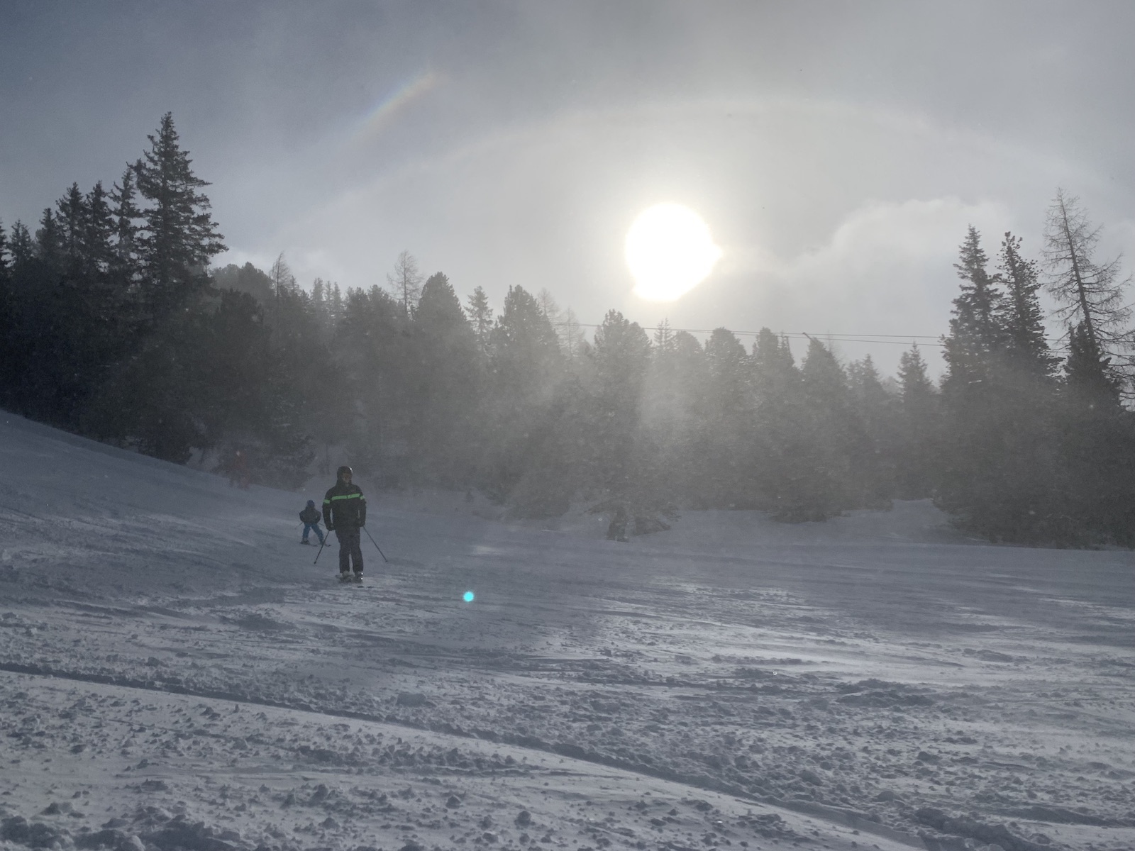 Vanochtend was het heerlijk wakker worden met ruim 30 cm verse sneeuw. Op naar de pistes dus! Helaas was het merendeel van de liften gesloten door de hevige wind, maar dat mocht de pret niet drukken. We zijn zelfs op sleeptouw genomen door een sneeuwscooter, omdat de stoeltjeslift waar we net aankwamen, gesloten werd. Ondanks dat lagen de pistes er heerlijk bij. Verse sneeuw, perfect geprepareerd en heerlijk rustig. Ook de zon wist af en toe door het wolkendek heen te dringen en dat zorgde met de opwaaiende sneeuw voor een bijna magisch tafereel. Benieuwd hoe dat er uit zag? Bekijk de foto’s hieronder.