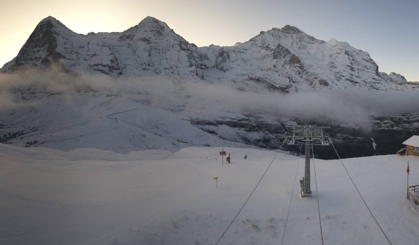 Wat is het weer heerlijk wakker worden vandaag! We kijken naar de webcams en wat we zien is prachtig. Het heeft gesneeuwd en het klaart nu weer op. Oftewel: witte bergen met een prachtige zonsopgang. Kan het veel beter?