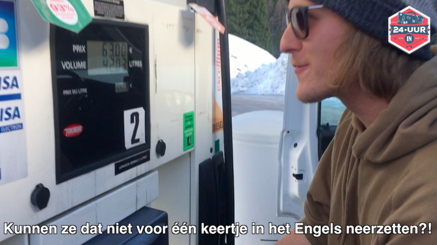 Wat gebeurt er als een Duitser en een Nederlander gaan tanken in Frankrijk tijdens hun wintersportvakantie? Het klinkt als een slechte grap, maar tijdens de opnames van onze 24 UUR IN webserie kwamen wij tot de conclusie dat zelfs het tanken vrij lastig kan zijn. Sebi (Duitser) en Frank (Hollander) zijn allebei geen Franse taalwonderen en dat blijkt maar weer uit het onderstaande fragment. Sebi moet dringend tanken en heeft nog maar één streepje over. Ze moeten nog een paar honderd kilometer langs bergwegen met veel bochten, dus een volle tank voor Sebi was noodzakelijk. Zij staan bij het tankstation en dan begint er een Franse dame tegen de twee jongens te praten via een automatisch afspeel apparaat. HELLUUP!