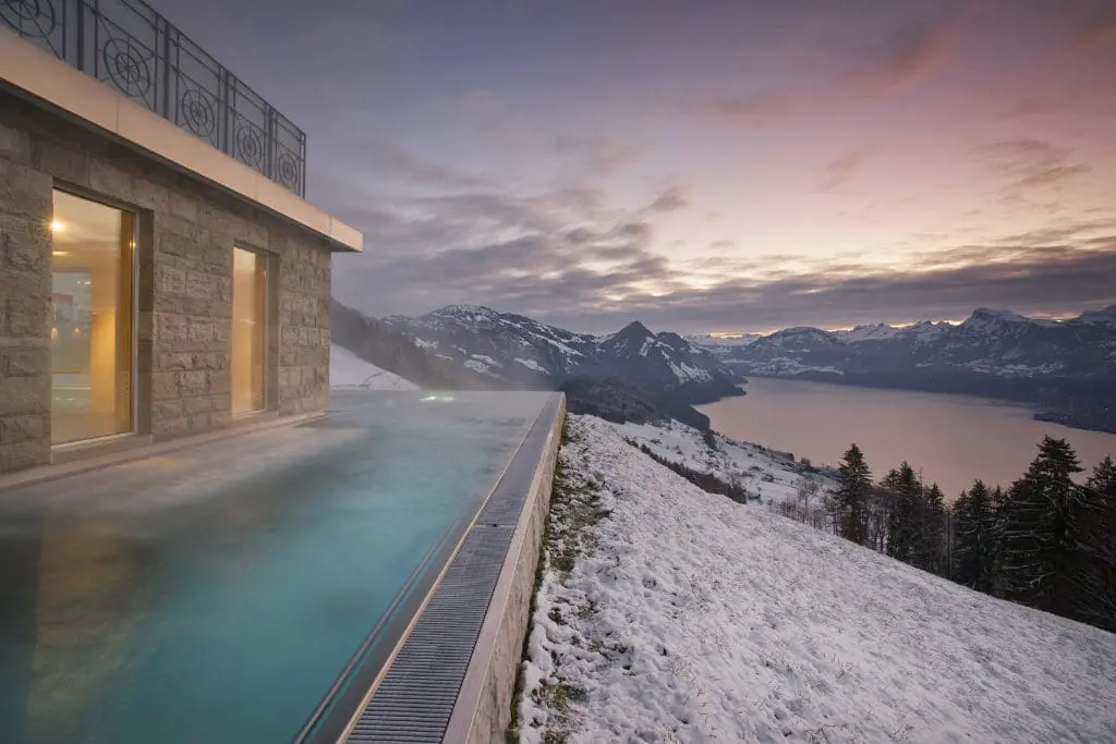 Hotel Villa Honegg, gelegen op de Bürgenstock berg, steekt hoog boven het meer van Luzern uit. Het hotel biedt maar liefst 1.900 luxe kamers met een balkon en als kers op de taart een verwarmd zwembad dat van binnen overloopt naar buiten. Je wordt overvallen met overbodige luxe. En dat niet alleen, ook word je verwend met een uitzicht waar je ù tegen zegt. Vanuit het verwarmde zwembad kijk je uit over de bergen en het meer. De video en foto’s hieronder zeggen genoeg!