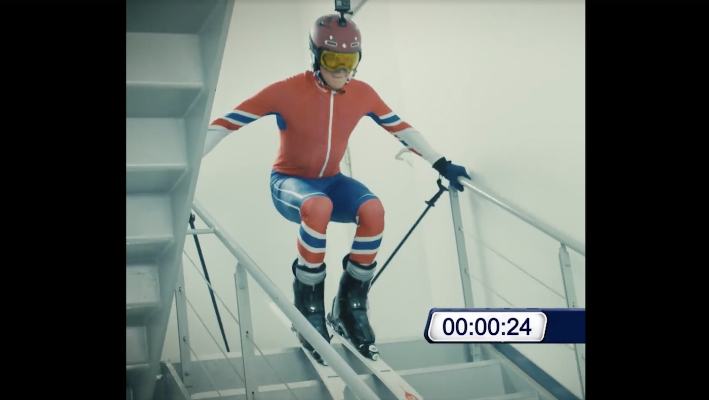 De Noren hebben het weer voor elkaar. Na de ontdekking van de skisport op zich hebben ze nu ook weer een nieuwe discipline in het leven geroepen: de trappenhuis slalom. Wat dat inhoudt? Nou, het woord zegt het al.