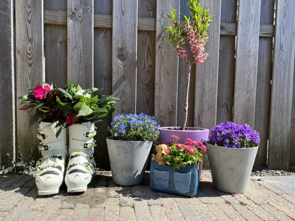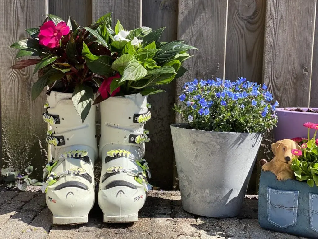 Tuiniertip: maak van je oude skischoenen bloempotten