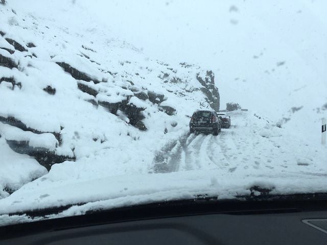Ilse was samen met haar reisgezelschap op weg terug naar huis van vakantie afgelopen zondag, toen ze onaangenaam werd verrast door de sneeuw. Op de Grote Sint-Bernhardpas sneeuwde het volle bak vanaf 1.700 meter. En dat vinden zomerbanden natuurlijk niet zo fijn, dus kwamen auto’s aan de Zwitserse kant van de pas vast te staan. De pas werd afgesloten en dat betekent dat een bijzonder avontuur in de sneeuw eind augustus.