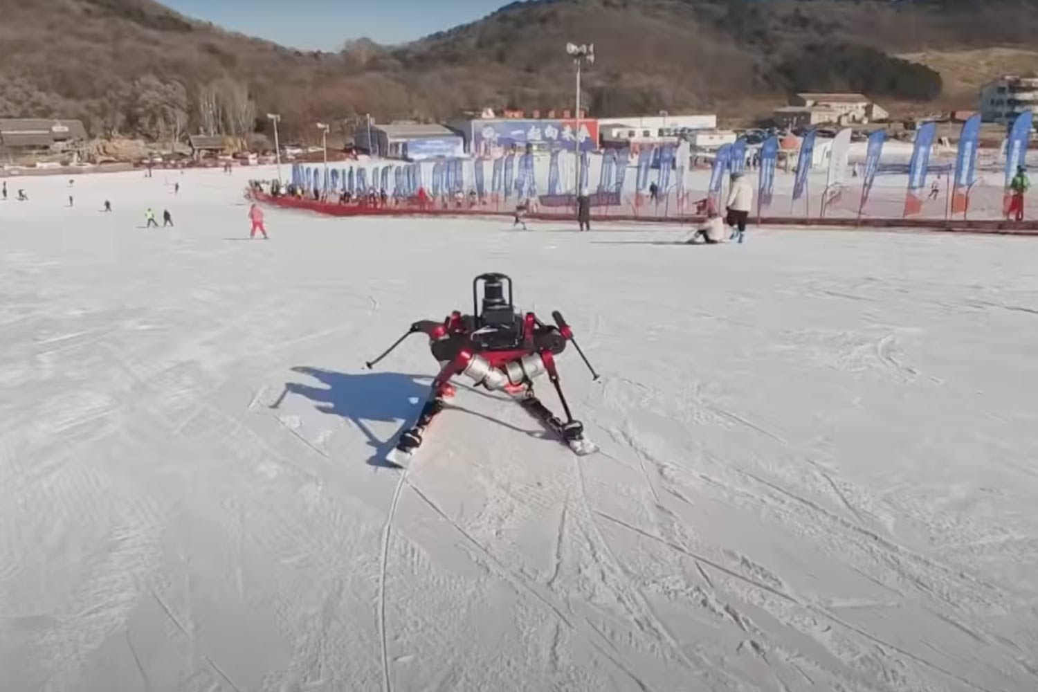 Opvallende beelden vanuit China, waarop we een robot al skiënd van de piste naar beneden zien komen. De robot, met zes poten, is uitgerust met een paar ski’s en skistokken. Alle tests zijn geslaagd, laten de onderzoekers van de Shanghai Jiao Tong universiteit weten.