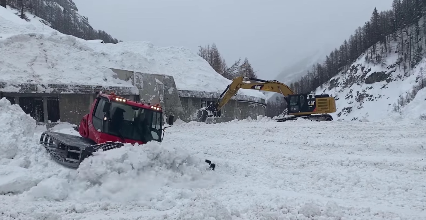 Zermatt was de afgelopen week tijdelijk niet bereikbaar. Vanwege een lawine kon er twee dagen lang niet tussen Täsch en Zermatt worden gereisd. De straat en het spoor werden de afgelopen dagen sneeuwvrij gemaakt en ondertussen is Zermatt weer bereikbaar. De beelden geven een duidelijk beeld van de gigantische sneeuwhoeveelheden.