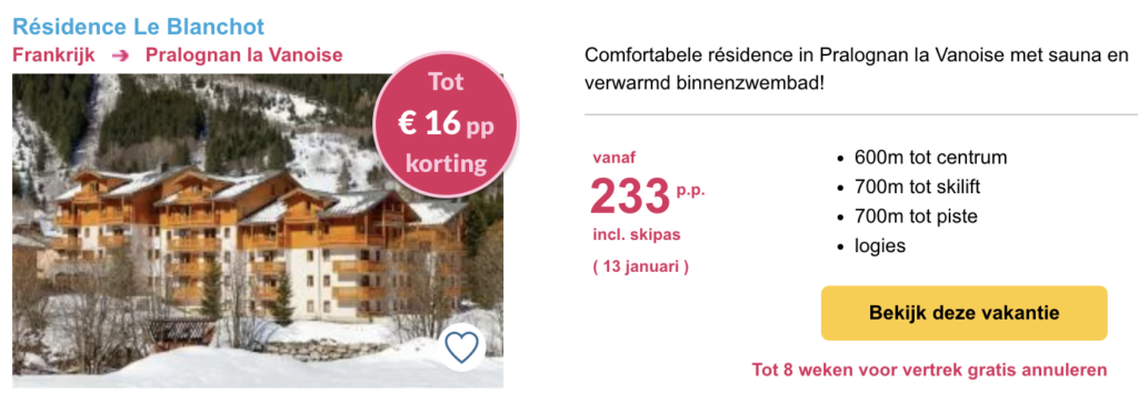 Wil je graag in januari op wintersport en heb je nog niet geboekt? Hieronder vind je aantrekkelijke aanbiedingen van verschillende aanbieders. Kijk je mee? Klik op de afbeeldingen voor meer informatie, prijzen en boeken.