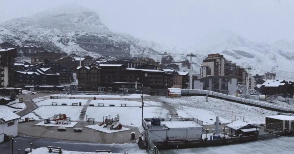 De sneeuwgrens zakt in Zwitserland en Frankrijk tot net boven de 2000 meter, wat betekent dat het in de hogergelegen gebieden lekker wit wordt. In Val Thorens is in het dorp zelfs al sneeuw gevallen, kunnen we op de beelden zien. Heerlijk!