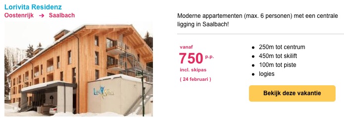 Voor je het weet sta je deze winter weer in de sneeuw. Echter moet je dan wel eerst je accommodatie boeken. Wij vonden een topdeal naar Saalbach voor deze voorjaarsvakantie. Wacht dus niet langer en boek appartement Lorivita Residenz.