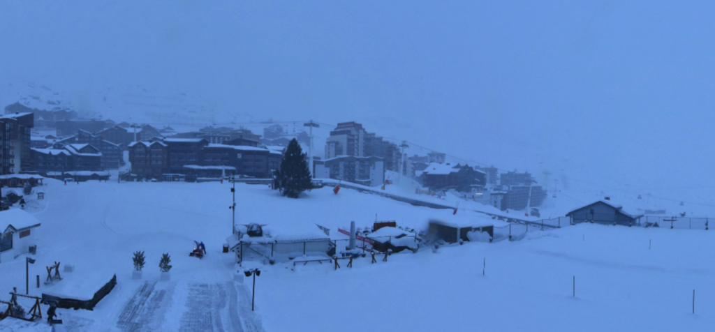 Voor de Alpen geldt komende dagen: hoe westelijker, hoe meer sneeuw. Zoals maandag al werd voorspeld, valt de meeste sneeuw vandaag in Frankrijk en Zwitserland. Daar ging het vannacht in veel skigebieden al lekker los, zoals je bijvoorbeeld op onderstaande webcamfoto van Val Thorens kunt zien. Dit valt alleen reuze mee bij wat er vandaag en morgen nog op de planning staat.