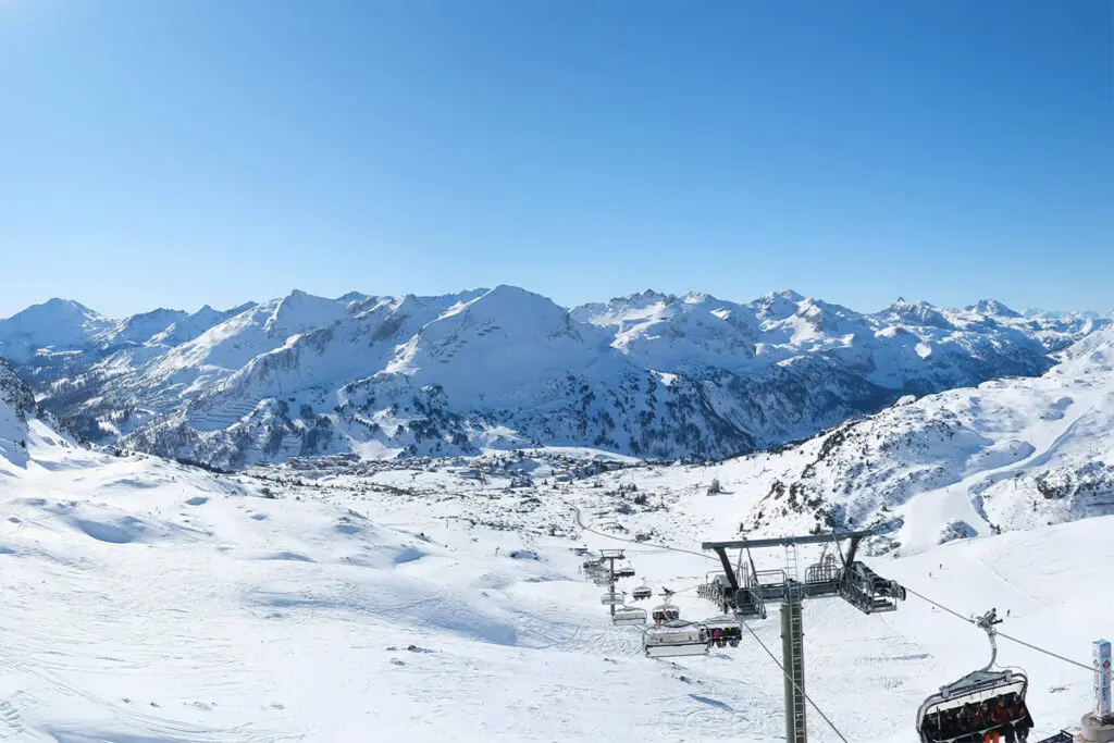 Zowel vanuit het noorden als vanuit het zuiden wordt Obertauern jaarlijks bedekt met meters sneeuw. Dit is een van de meest sneeuwzekere skigebieden van Oostenrijk. Wat maakt Obertauern verder bijzonder? Het dal heeft de vorm van een sleutel. Het dorp Obertauern ligt midden in een grote kom, omgeven door bergen, en op de flanken van deze bergen liggen alle pistes. In totaal kun je hier wintersporten op ongeveer 100 kilometer aan pistes.
