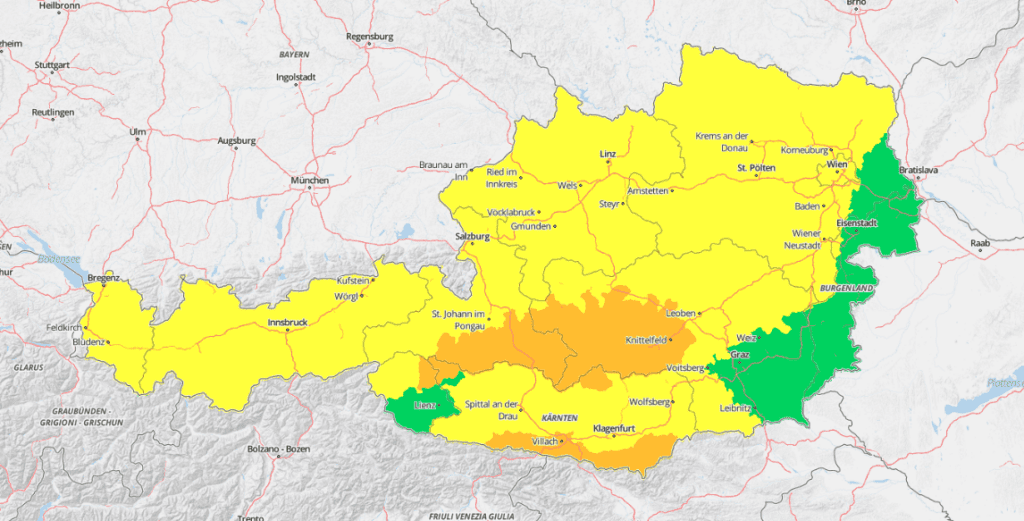 In deze oranje regio’s in Oostenrijk moet je extra opletten!