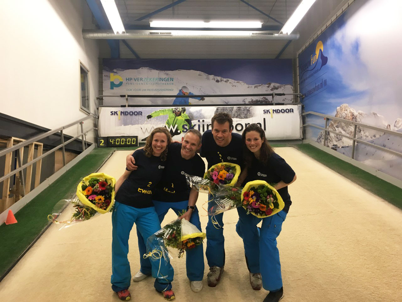 Skiindoor Landsmeer heeft het wereldrecord lange afstand skiën op een indoor rollerbaan behaald. Om geld in te zamelen voor de Alpe d’HuZes KWF Kankerbestrijding hebben vier skileraren 24 uur non-stop geskied op een indoor rollerbaan.
