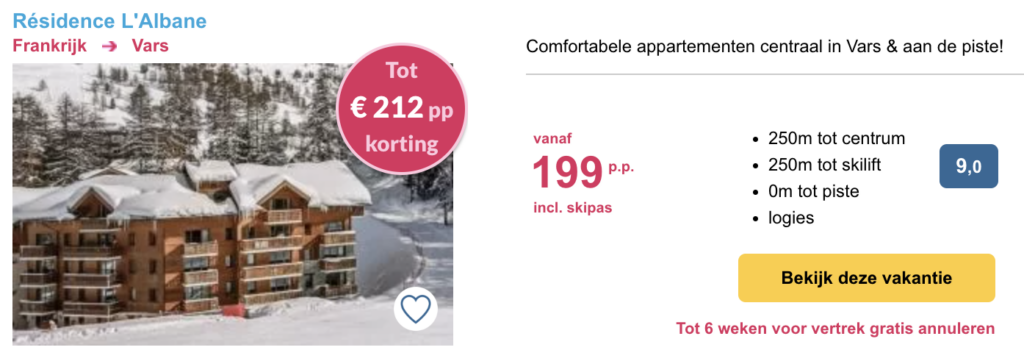 Waarschijnlijk zit je nu lekker in je korte broek op het terras. Als dat niet het geval is, is het een goed moment om alvast vooruit te kijken naar skiseizoen 2023/2024. Heb je nog niet geboekt? Dan wordt het hoog tijd om dat te doen. Om het je wat gemakkelijker te maken, hebben we in dit artikel een aantal geweldige deals in Frankrijk voor je op een rijtje gezet. En het beste van alles? Ze zijn allemaal onder de € 200,- per persoon!