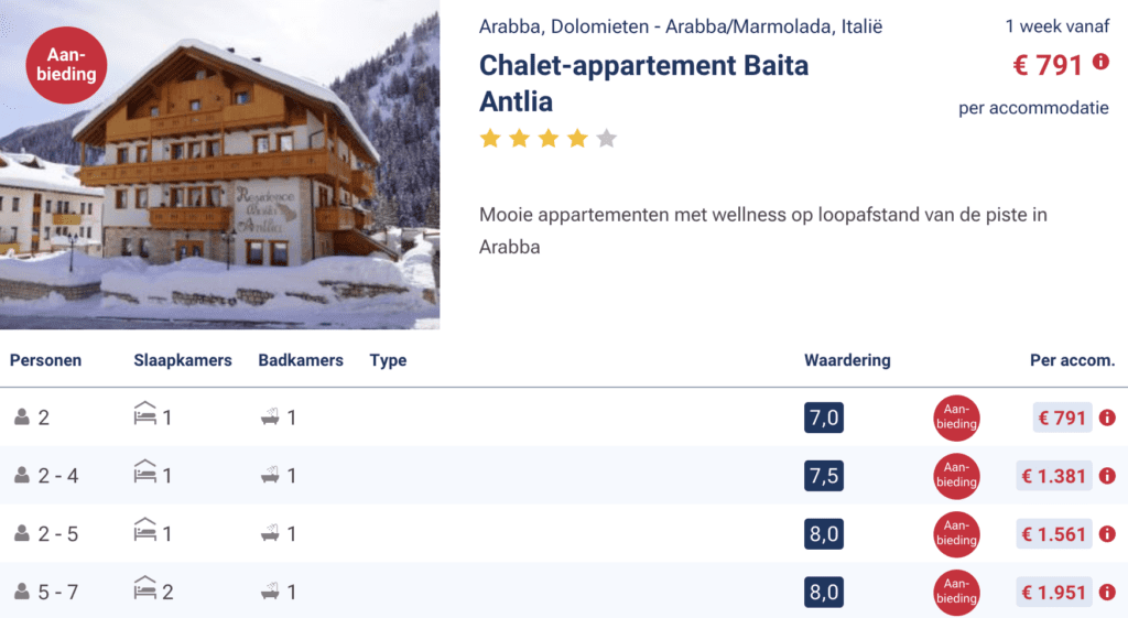 Wil jij graag op wintersport naar Italië, maar heb je nog niet geboekt? Hieronder hebben we een aantal fijne deals voor je op een rijtje gezet. Klik op de afbeeldingen voor meer informatie!