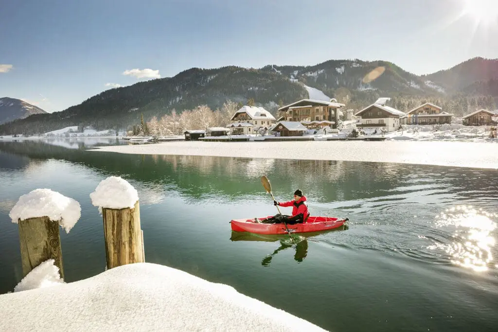 Waarom zou je op de pistes blijven als je in Oostenrijk ’s winters ook het water op kunt? Niet alle bergmeren zijn dichtgevroren en het open water biedt de unieke ervaring om eens te gaan kajakken of kanoën in de prachtige witte bergwereld. Terwijl je in je kano of kajak over het water peddelt, geniet je van de imposante bergen en winterse landschappen die rondom je liggen. Heel anders dan in de zomer, maar minstens zo leuk!