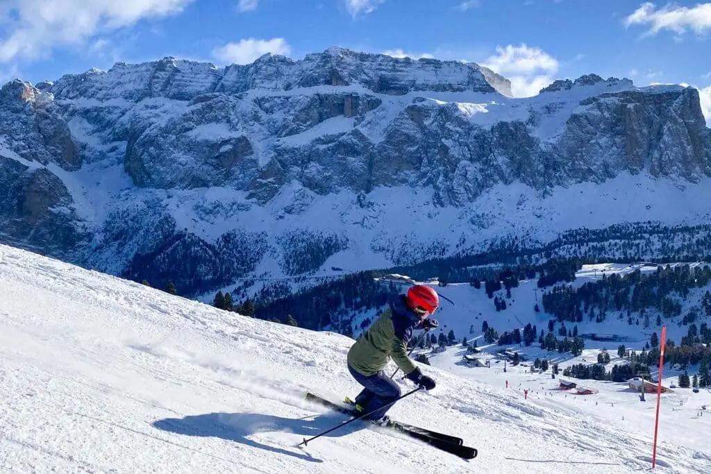 Voor mij was het de eerste keer dat ik in de Dolomieten was, dus ik keek m’n ogen uit. Vanaf moment één was ik onder de indruk van de omgeving en na een week had ik zo’n 3242 keer gezegd hoe mooi het was. In totaal beschikt Val Gardena (Gröden in het Duits) over zo’n 175 km aan pistes, te bereiken vanuit de drie dorpen Selva, St. Christina en Ortisei. Ondanks dat het begin december was en we in het openingsweekend aankwamen, waren bijna alle pistes en liften al geopend. En zoals alleen de Italianen dat kunnen, lagen de afdalingen er heerlijk bij. Uiteraard skieden wij hier de Sellaronda rondom het Sellamassief, maar ook de pistes boven Ortisei en St. Christina hebben we even meegepakt. Inclusief de steile en smalle Saslong, de World Cup piste in Val Gardena, en de bijna 11 km lange La Longia. Voor de koffiepauze, die was vanwege de koude temperaturen echt nodig, en lunch vonden we elke dag een plekje in een fijne hut. Pizza, pasta, knödels, het kwam allemaal voorbij. Tel daar het gezellige kerstsfeertje bij op en je snapt dat het een weekje puur genieten was!