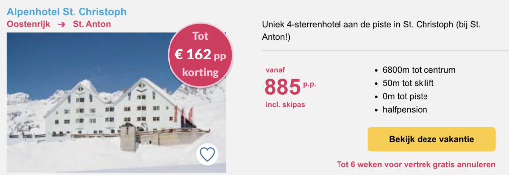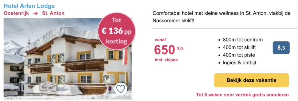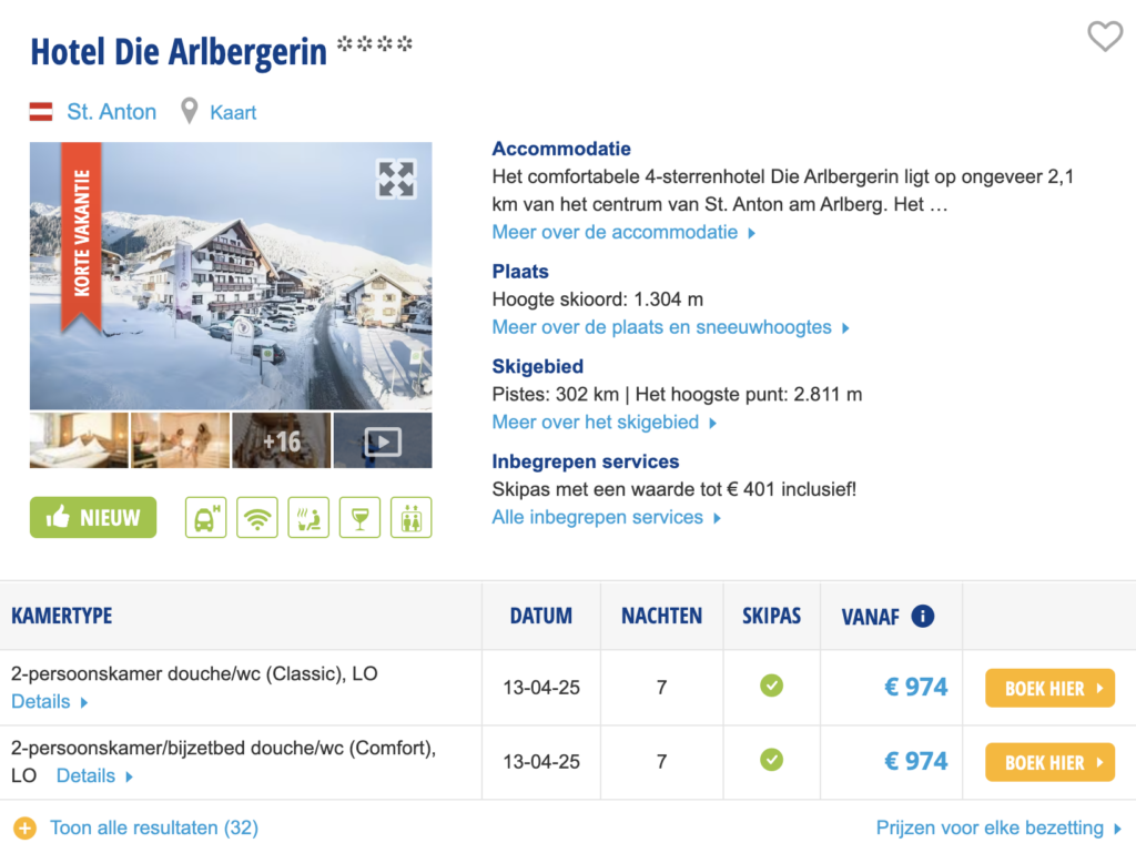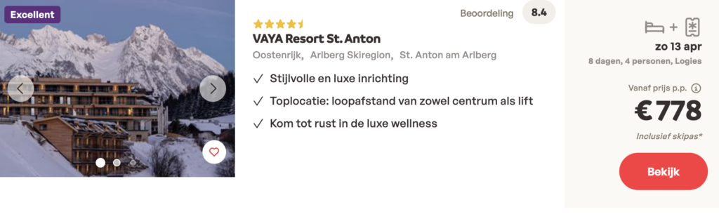 Op zoek naar wintersportdeals? Bij deze aanbieder boek je een wintersport in St. Anton am Arlberg voor een scherpe prijs en inclusief skipas. Zo heb je alles in één keer geregeld!
