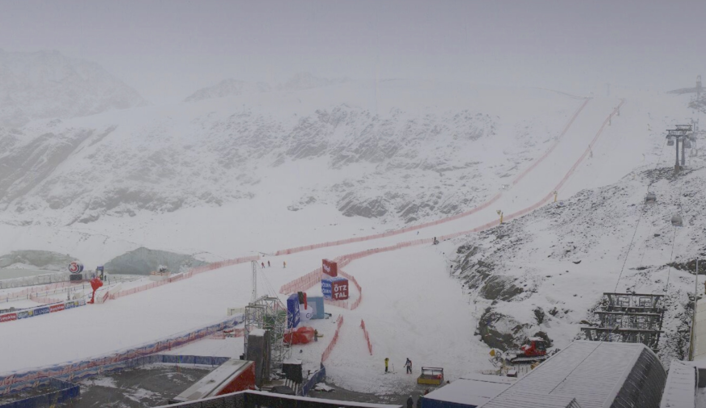 De weersvoorspellingen voor vandaag waren spannend. Het zou vannacht beginnen met regenen en sneeuwen en dan was het nog maar de vraag wanneer de neerslag op zou houden. De neerslag houdt echter aan. Als we de webcams in Sölden bekijken zien we dan ook sneeuw en nattigheid.