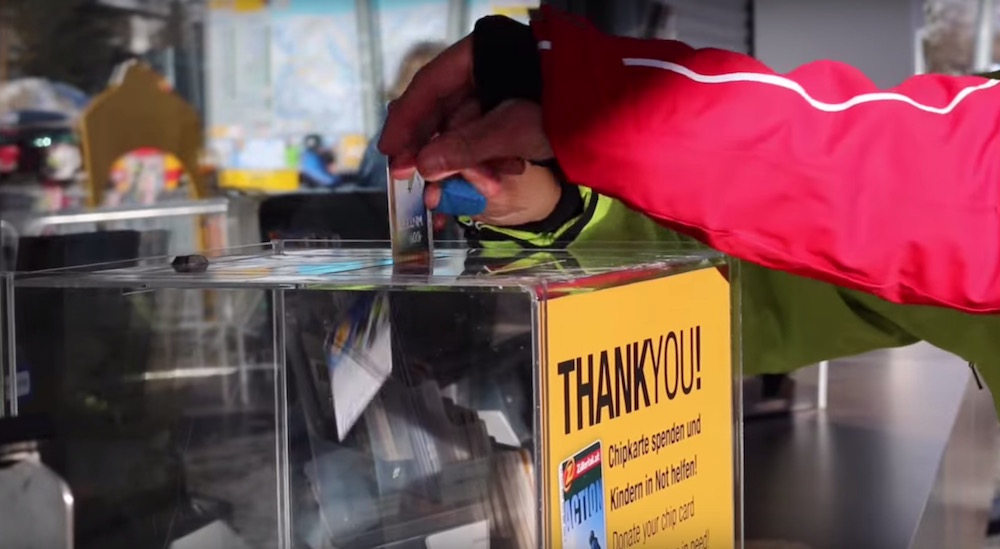 Zoals in bijna elk skigebied betaal je ook in de Zillertal Arena borg voor je skipas. Dit om ervoor te zorgen dat de chipkaarten opnieuw gebruikt kunnen worden. In de Zillertal Arena betaal je €2,- borg, die je bij het inleveren in een van de automaten of aan de kassa weer terugkrijgt. Als je bij de kassa’s in de Zillertal Arena komt zie je echter ook vierkante transparante boxen staan waar je jouw skipas na gebruik kunt achterlaten. Deponeer je de skipas daarin, dan krijg je geen geld terug, maar spendeer je dat geld aan het goede doel.